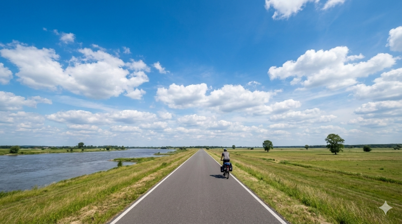 Warum ist das für dich als Entdecker so spannend? Dieses System sorgt dafür, dass sich das Odertal jedes Mal anders präsentiert. Wenn du auf dem Deich radelst (wie auf dem Oder-Neiße-Radweg), hast du im Winter das Gefühl, am Meer zu sein, während du im Sommer über endlose, blühende Wiesen blickst.
