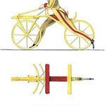 In Reaktion auf das französische Velocipede mit Pedalen am Vorderrad baute er ein zweirädriges Veloziped mit Gestängen, die auf eine Kurbel am Hinterrad wirkten.